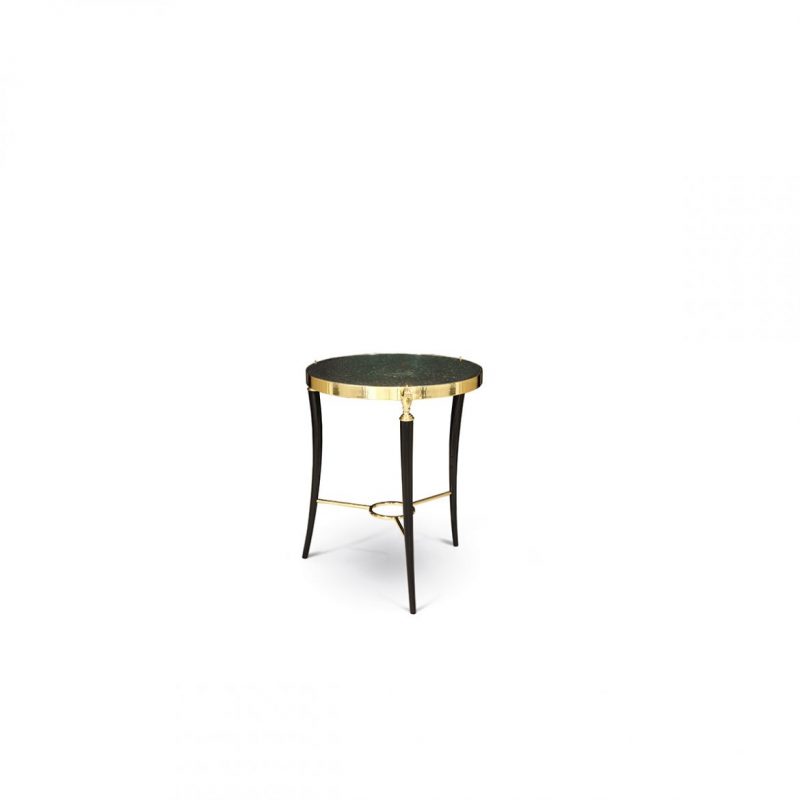Gisele side table has three elegant Victorian cast brass hands on a delicate tripod base hold an iridescent peacock feather top. This luxurious table is sure to be a showstopper in any room.