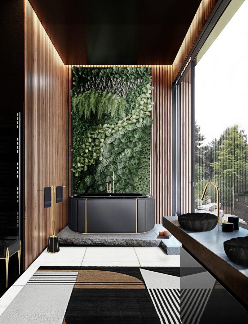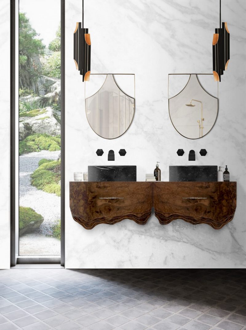 If you fancy yourself a trend chaser, then consider pairing this trend with the black and gold bathroom trend that’s also incredibly popular this season. The glam-edge feel of black and gold coupled with the warmth of wood is a killer combination that’ll make yours the most coveted bathroom on the block. Just take a look at this stunning bathroom from Studio McGee.