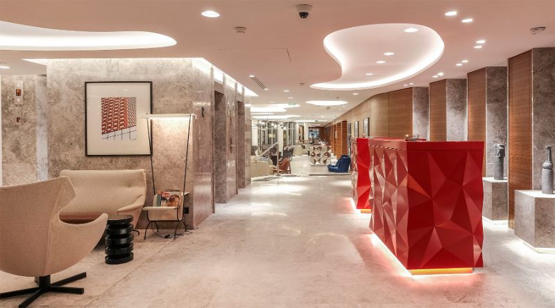 Using the gray marble, both inside and for the walls of the side courtyard offers a beautiful tribute to the city. “Fearlessly Chic” is the Didier Gomez’s design philosophy and it is promoted by Renaissance Hotels, meaning that indigenous touchpoints are infused into the design of each modern hotel.