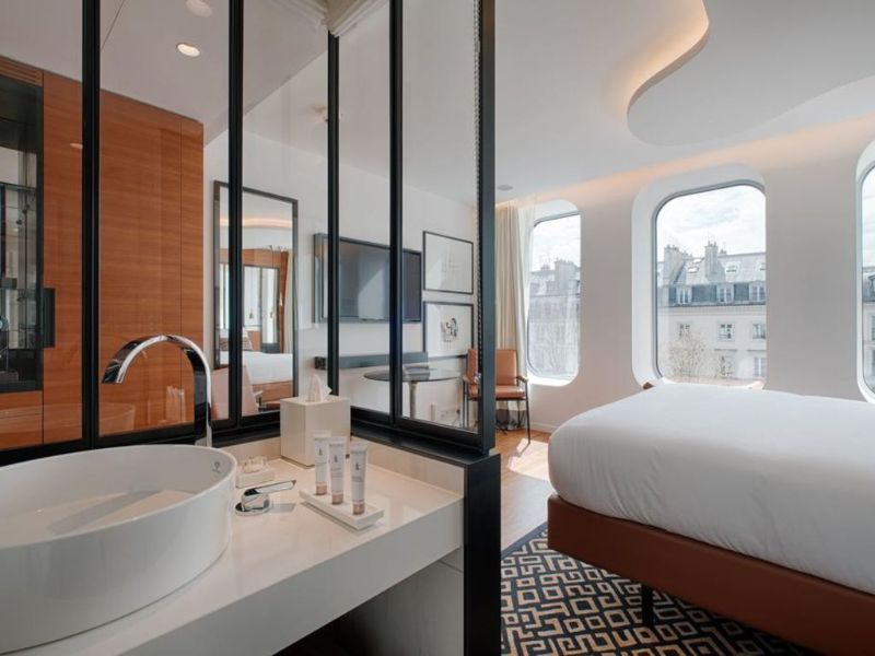 Didier Gomez’s unique design includes cross-cultural features, including a sculpture from Africa in the lobby, furnishings from Asia in the guestrooms, and local Parisian street art throughout. In his luxury interior design, Didier Gomez has brought the outside in with tree motifs in the guestrooms, cloud-shaped ceiling lights, and a striking vegetation wall in the hotel’s expansive outdoor terrace.