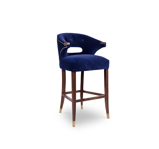 Nanook is the master of bears, the one who decides the luck of the hunters in the Arctic regions. NANOOK Bar Chair blends the beauty and grandiosity of this animal. This bar stool with backrest has a strong presence balanced with the elegance given by the golden nailhead trim and the button detailing on the inner back. It features legs in ash with walnut stain matte varnish.