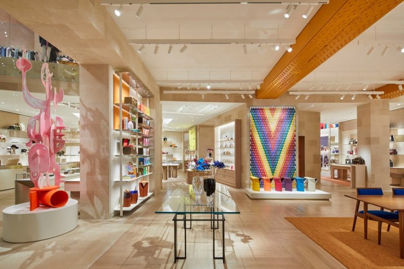 In order to achieve this authentic and eccentric concept at London’s Louis Vuitton, it was a 14-month process, to reveal an incredible colourful retail destination. This French House presents amazing pieces within womenswear, menswear, accessories, and a selection of bespoke items that are exclusive to the store. The main goal of the top American architect Peter Marino was definitely to deliver to the fashion label’s store, the opportunity to display bright fixtures and furnishings that evoke “happiness with no feeling of intimidation”.