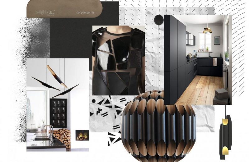 The rich black tone will always belong in the timeless color selection, especially in the winter season. Black with metallic gold, silver, copper, and brass creates an opulent look, so it is often used for joinery hardware or luxury lighting designs to create an elegant accent.