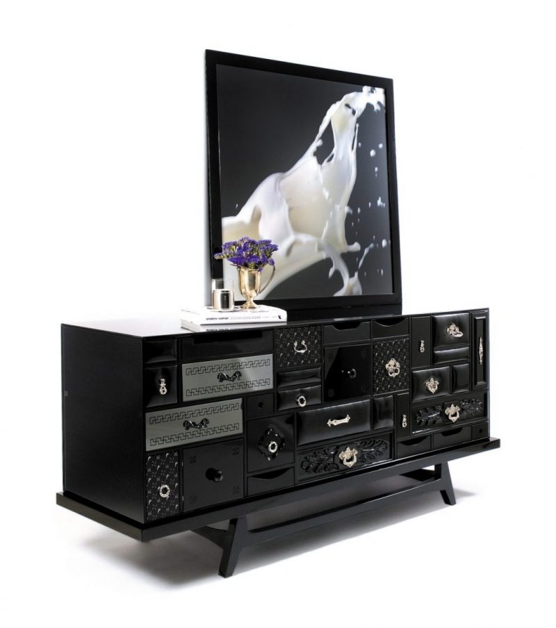 When art becomes a sideboard your room acquires an evermore-inspiring atmosphere. The Mondrian sideboard is more art than utilitarian furniture. Undoubtedly, it constitutes a unique and collectible object that is different from anything else and exudes a sense of both experimental design and luxury. The sideboard’s base is composed of mahogany and tempered glass makes the box. It also contains carved drawers finished in high gloss colored lacquer.
