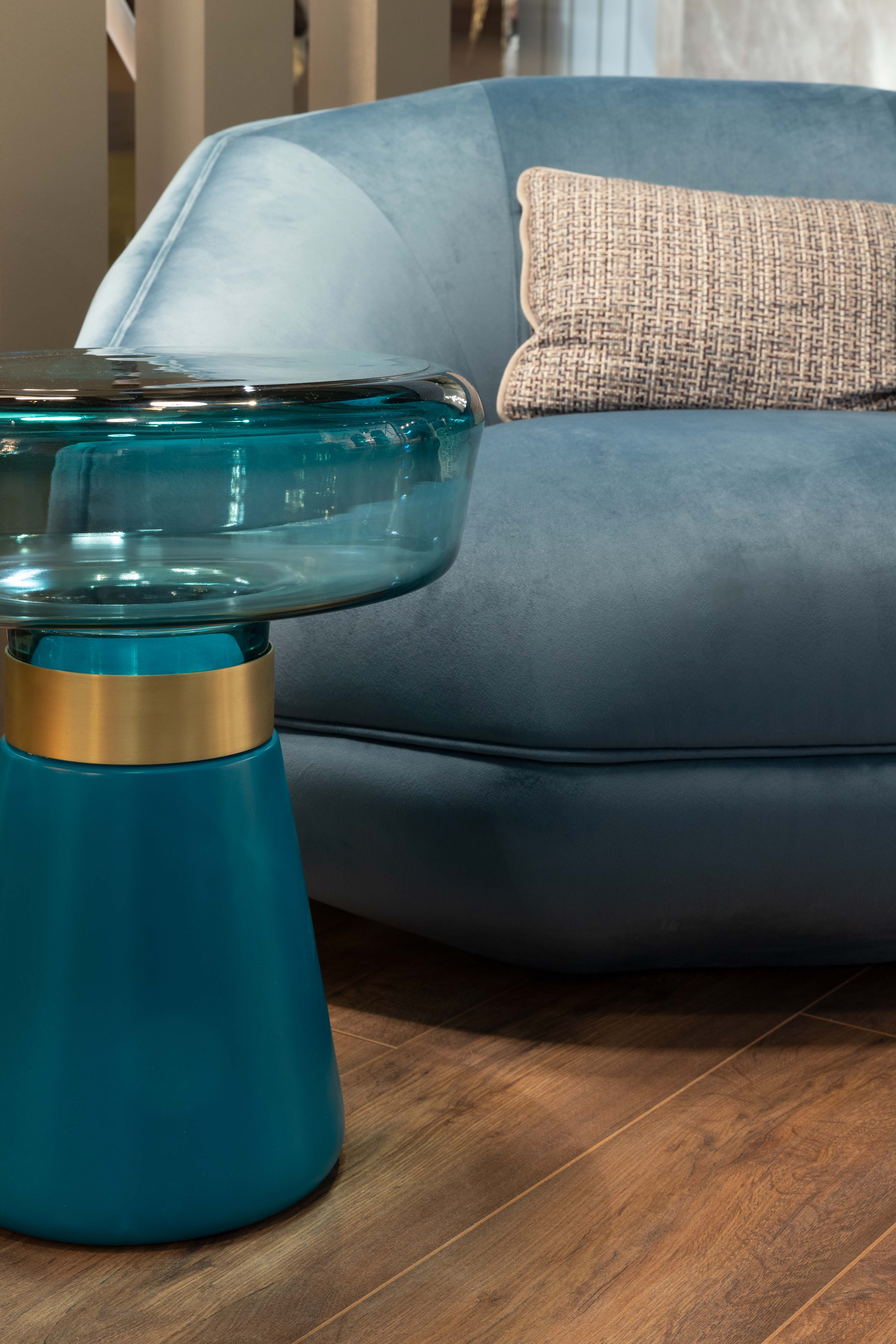 The ELO armchairis an explosive mix of glamour and vibrance that takes you back to the late 70s. This high-end piece was designed while listening to the hard-rock and orchestral melodies of the iconic British band Electric Light Orchestra. As for Taboo Side Table, it’s a unique mid-century modern furniture design that takes you back to fashion designers’ Leigh Bowery iconic looks. The mix of clear glass with a metallic lacquered body makes this piece stand out in the interior design, giving it a new significance and a prominent role as the protagonist of any room.