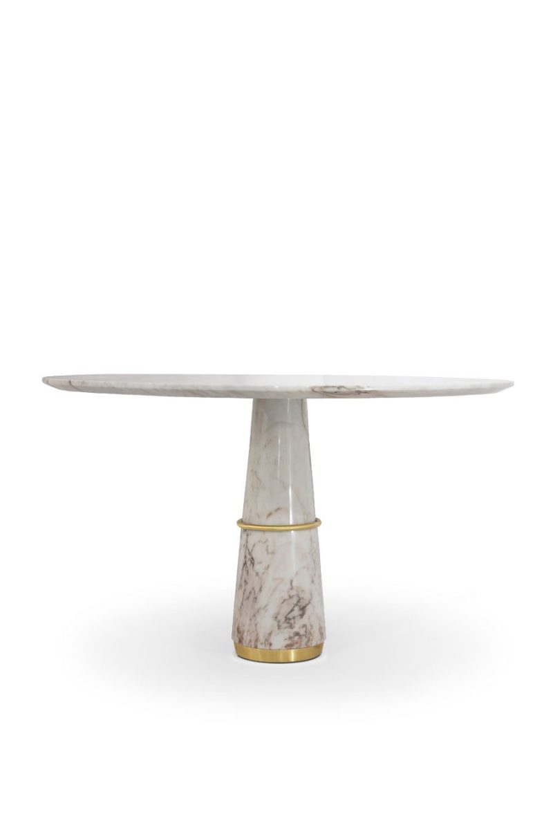 Agra is the modest setting of one of the most famous monuments in the world, Taj Mahal, also known as the marble mausoleum. Just like it, AGRA Dining Table is an impressive display of craftsmanship and elegance. Made of Estremoz marble with polished gold details, this round dining table will add refined grace to the Contemporary Design